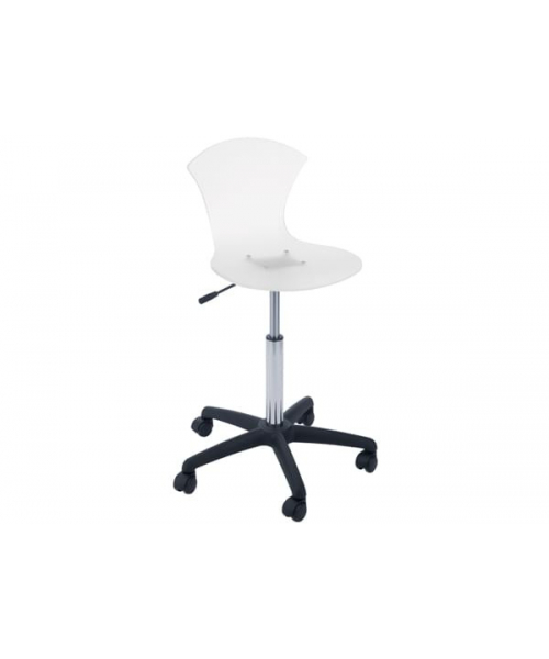 Стул для мастера выполнен из пенополиуретана, основание пластиковое пятилучье черного цвета на колесах, регулировка высоты пневматическая. Вариант цвета: черный, белый