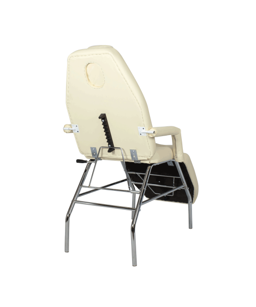 Может выполнять функцию косметологического кресла, кушетки и массажного стола. Кушетка раскладывается горизонтально и в спинной части предусмотрен вырез для лица, закрывающийся съемной мягкой подушкой. Мягкая часть кушетки разделена на три сегмента: сиденье, спинка и подушка под ноги. Для дополнительно удобства данная модель комплектуется подлокотниками, которые по необходимости Вы сможете легко снять.