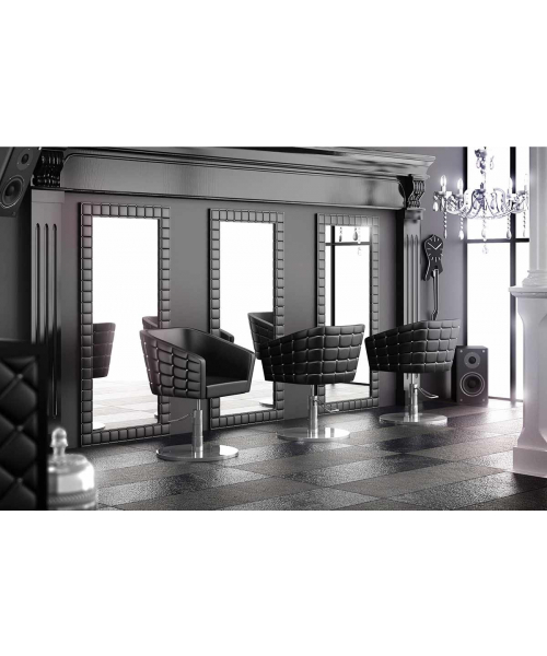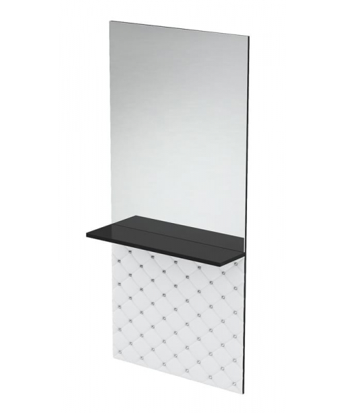 Парикмахерское кресло "Гламрок" с полкой состоит из большого зеркала и небольшой красивой полки, которая отделяет от нижней декоративной части. Цвет прошивки вы можете выбрать самостоятельно – в нашем интернет-магазине вы найдете огромный выбор разнообразных фактур, начиная с блестящей черной или белой экокожи и заканчивая обивкой под дерево.